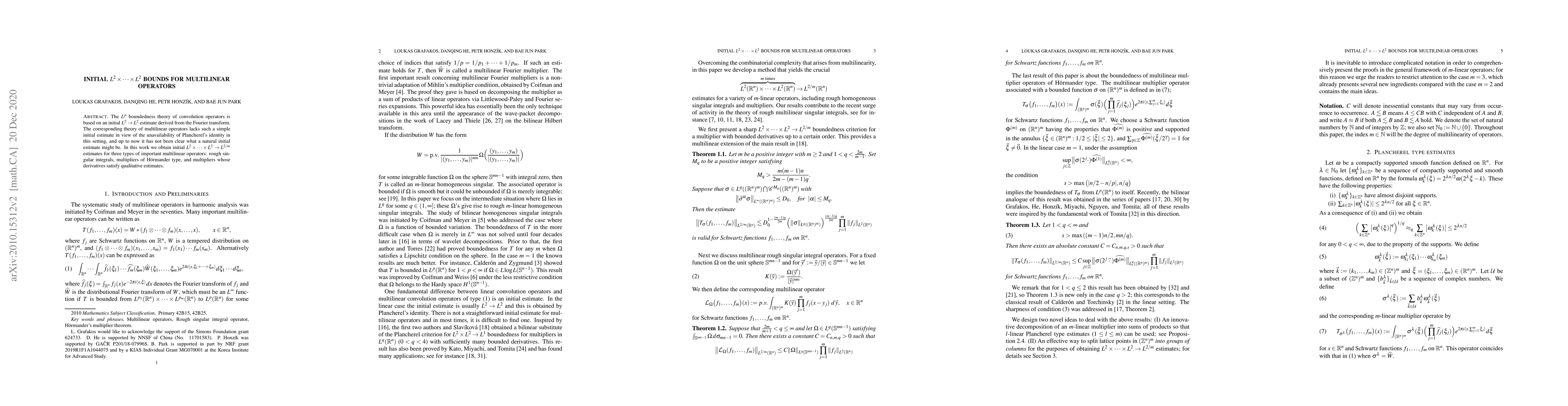 The $L^p$ boundedness theory of convolution operators is \linebreak based on an initial $L^2\to L^2$ estimate derived from the Fourier transform. The corresponding theory of multilinear operators lacks such a simple initial estimate in view of the unavailability of Plancherel's identity in this setting, and up to now it has not been clear what a natural initial estimate might be. In this work we achieve exactly this goal, i.e., obtain an initial $L^2\times\cdots\times L^2\to L^{2/m}$ estimate for general building blocks of $m$-linear multiplier operators. We apply this result to deduce analogous bounds for multilinear rough singular integrals, multipliers of H\"ormander type, and multipliers whose derivatives satisfy qualitative estimates.