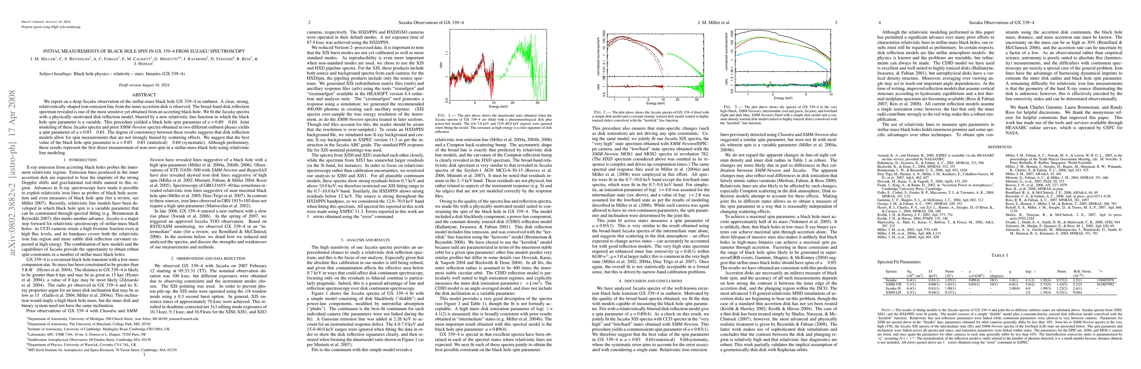 We report on a deep Suzaku observation of the stellar-mass black hole GX 339-4 in outburst. A clear, strong, relativistically-shaped iron emission line from the inner accretion disk is observed. The broad-band disk reflection spectrum revealed is one of the most sensitive yet obtained from an accreting black hole. We fit the Suzaku spectra with a physically-motivated disk reflection model, blurred by a new relativistic line function in which the black hole spin parameter is a variable. This procedure yielded a black hole spin parameter of a = 0.89 +/- 0.04. Joint modeling of these Suzaku spectra and prior XMM-Newton spectra obtained in two different outburst phases yields a spin parameter of a = 0.93 +/- 0.01. The degree of consistency between these results suggests that disk reflection models allow for spin measurements that are not strongly biased by scattering effects. We suggest that the best value of the black hole spin parameter is a = 0.93 +/- 0.01 (statistical) +/- 0.04 (systematic). Although preliminary, these results represent the first direct measurement of non-zero spin in a stellar-mass black hole using relativistic line modeling.