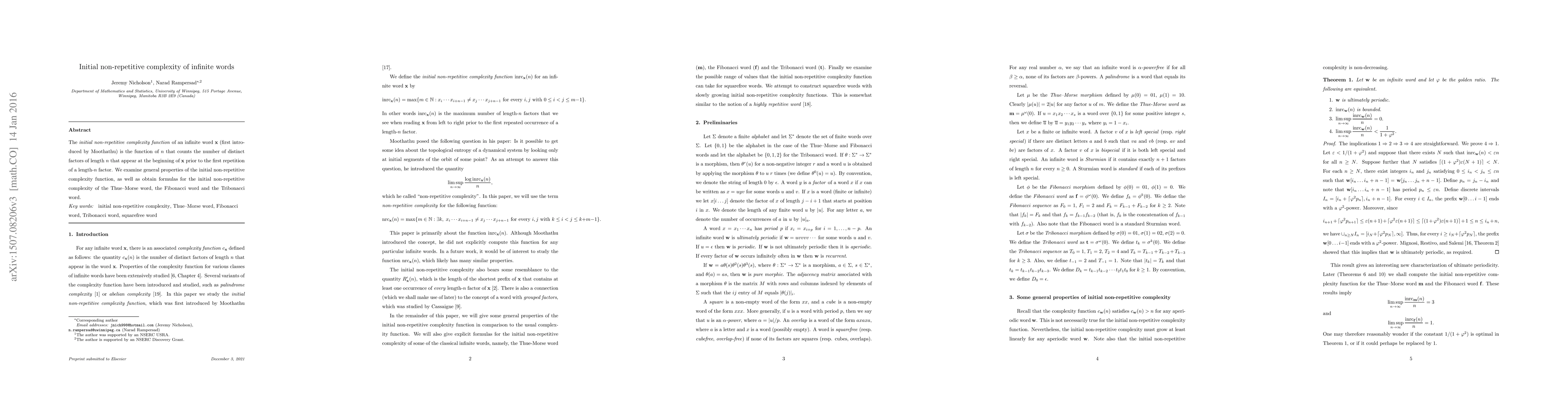 Researchers analyzed the initial non-repetitive complexity of infinite words, including the Thue-Morse word, Fibonacci word, and Tribonacci word, to discover formulas for their initial complexities, providing new insights into the properties of these sequences.