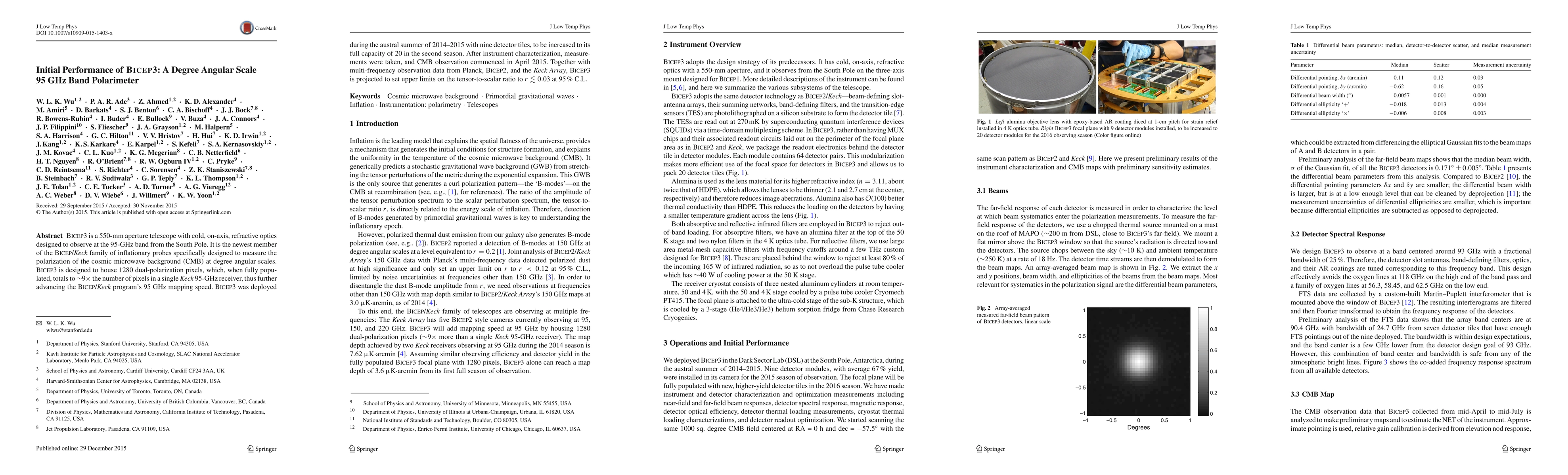 BICEP3, a $550~mm$ aperture telescope at the South Pole, aims to measure the polarization of the cosmic microwave background at $95~GHz$. Initial observations from its deployment in 2014-2015 project it to set upper limits on the tensor-to-scalar ratio at $r \lesssim 0.03$ with future full capacity.
