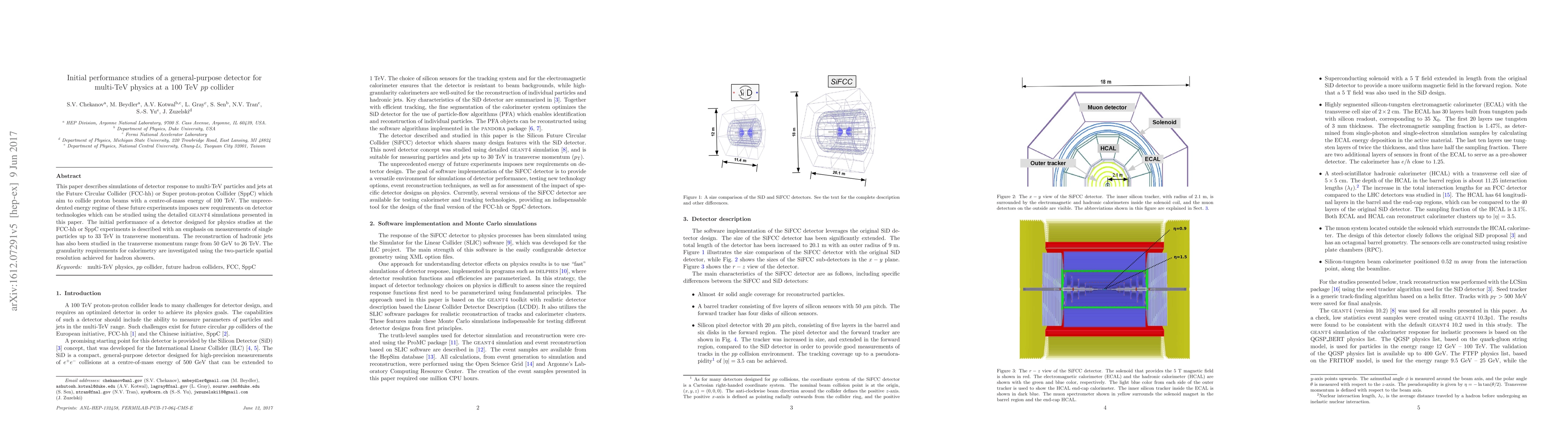 This paper presents GEANT4 simulations for a general-purpose detector designed for multi-TeV physics at the 100 TeV FCC-hh or SppC collider, focusing on single particle measurements up to 33 TeV and hadronic jet reconstruction from 50 GeV to 26 TeV. The study also examines the granularity requirements for calorimetry based on two-particle spatial resolution.