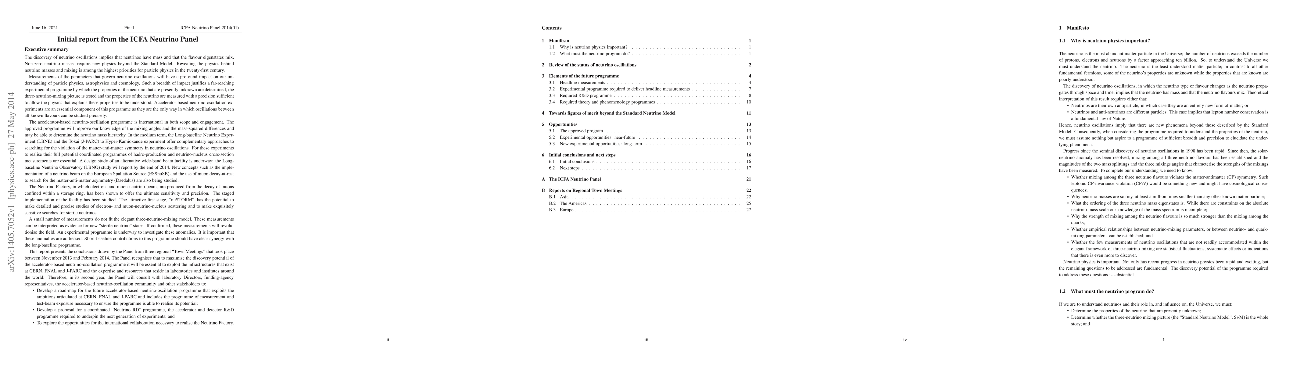 The ICFA Neutrino Panel's Initial Report outlines the need for international cooperation to enhance the accelerator-based neutrino-oscillation program and develop a neutrino factory. It emphasizes the importance of leveraging existing infrastructures and global expertise to maximize discovery potential and plans to develop a future roadmap, an R&D program, and collaborative opportunities for neutrino research.