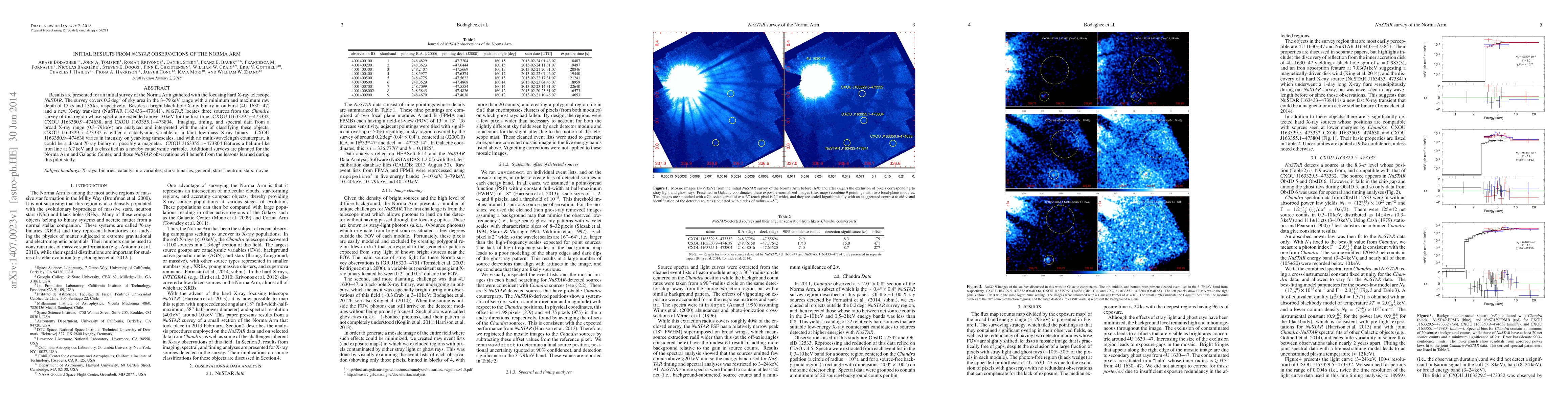 This study presents initial NuSTAR observations of the Norma Arm, identifying three new X-ray sources extending spectra above 10 keV. The findings include a bright black-hole binary and a new transient, with classifications for the new sources ranging from cataclysmic variables to potential magnetars.
