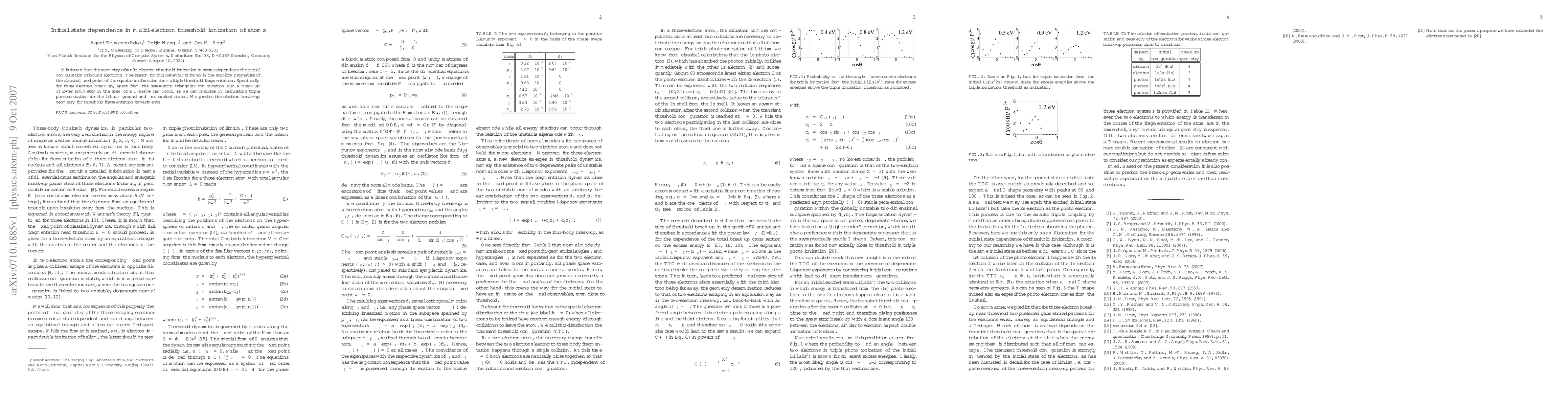 This paper demonstrates that the geometry of multi-electron threshold ionization in atoms is influenced by the initial configuration of bound electrons, with specific predictions for three-electron break-up geometries, including both symmetric and T-shaped configurations, based on the stability properties of classical fixed points.