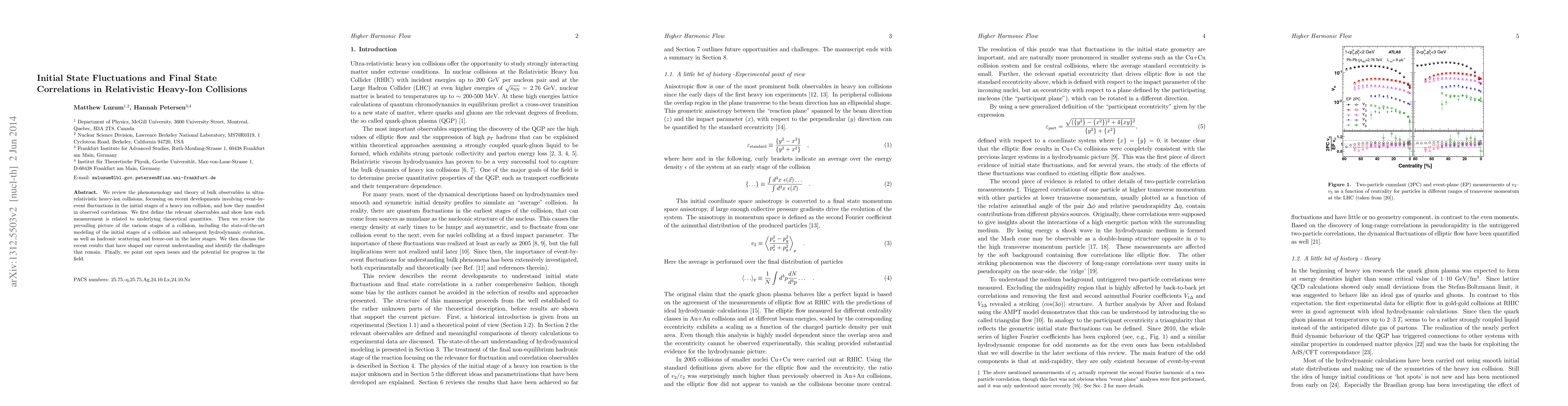 We review the phenomenology and theory of bulk observables in ultra-relativistic heavy-ion collisions, focussing on recent developments involving event-by-event fluctuations in the initial stages of a heavy ion collision, and how they manifest in observed correlations. We first define the relevant observables and show how each measurement is related to underlying theoretical quantities. Then we review the prevailing picture of the various stages of a collision, including the state-of-the-art modeling of the initial stages of a collision and subsequent hydrodynamic evolution, as well as hadronic scattering and freeze-out in the later stages. We then discuss the recent results that have shaped our current understanding and identify the challenges that remain. Finally, we point out open issues and the potential for progress in the field.