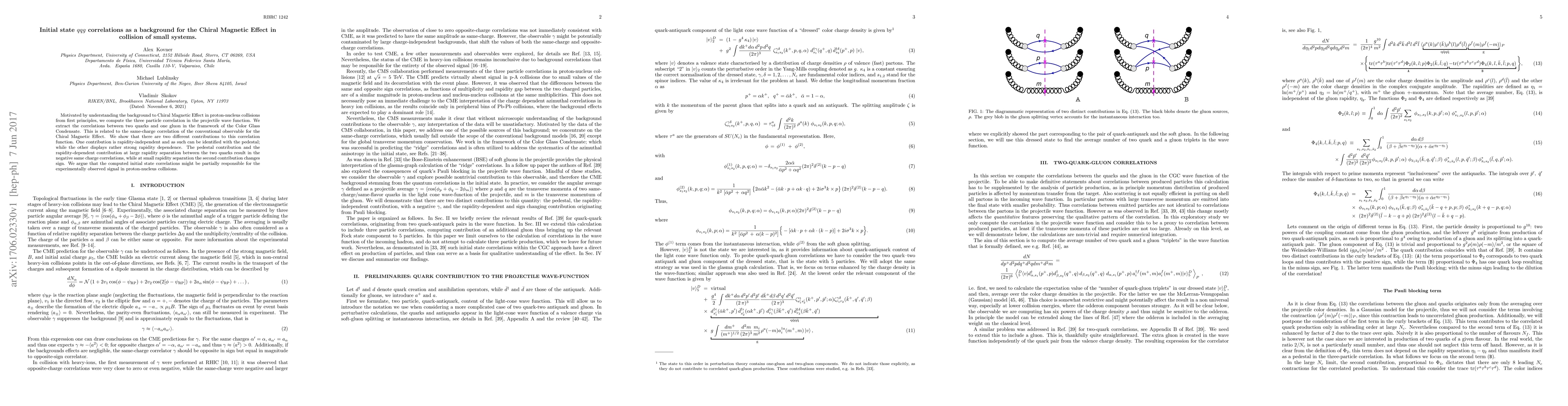 Researchers computed initial state qqg correlations in proton-nucleus collisions to understand the background of the Chiral Magnetic Effect, finding two distinct contributions that could contribute to experimentally observed signals.