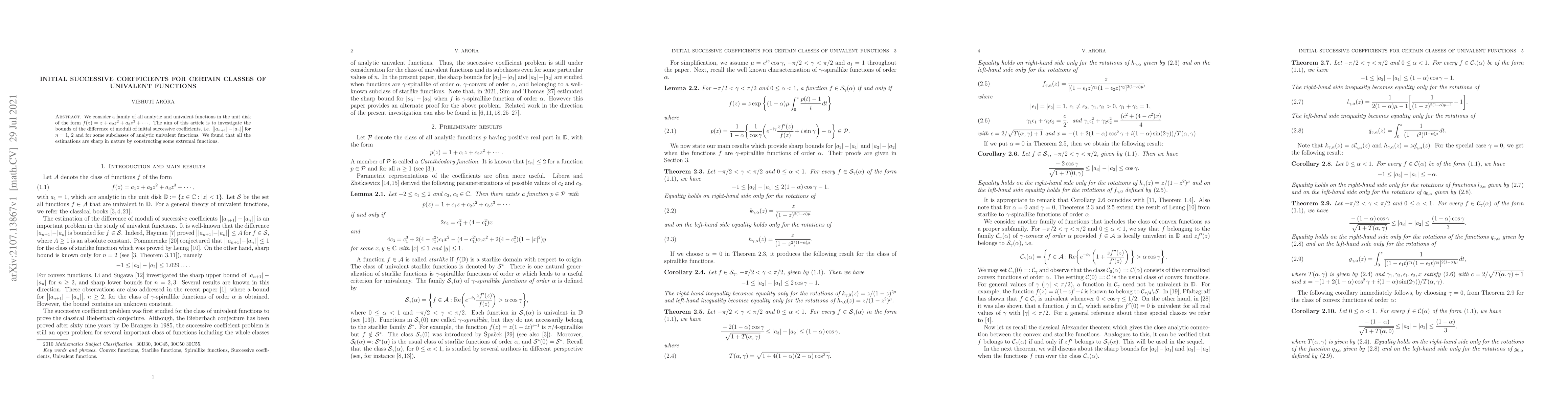This paper investigates the bounds of the difference of moduli of initial successive coefficients for certain univalent functions in the unit disk, focusing on subclasses of analytic univalent functions. The authors found that their estimations are sharp, demonstrated through the construction of extremal functions.