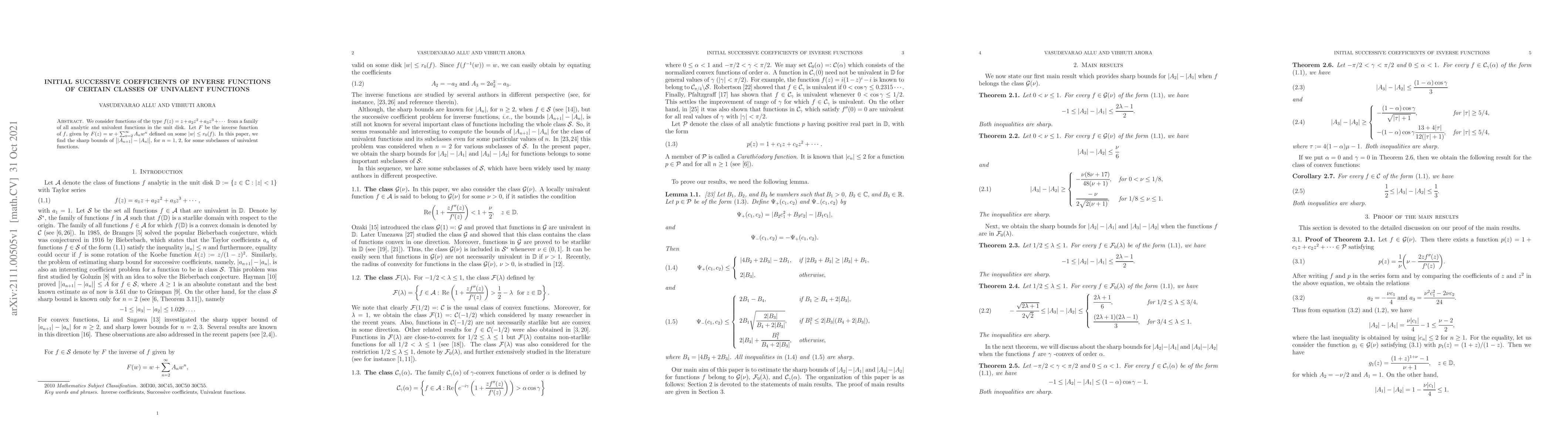 This paper investigates the inverse functions of specific univalent functions within the unit disk, determining the sharp bounds for the successive coefficients $|A_{n+1}|-|A_n|$ for $n=1, 2$. The focus is on subclasses of univalent functions and their inverse representations.