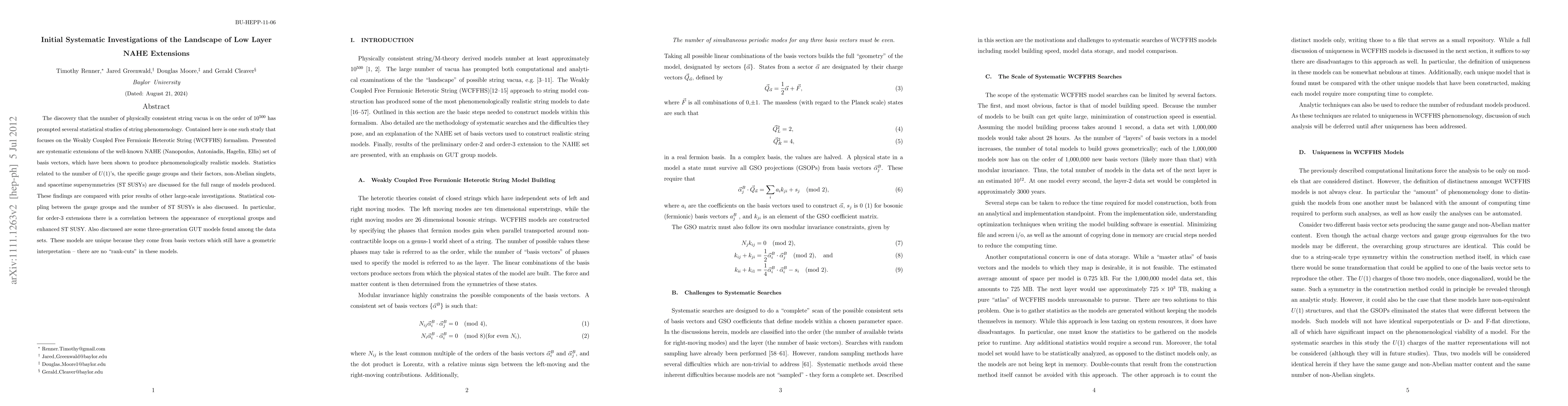 This paper investigates the statistical landscape of the Low Layer NAHE extensions in the WCFFHHS formalism, focusing on the number of U(1)'s, gauge groups, and ST SUSYs. It finds that exceptional groups in order-3 extensions tend to enhance ST SUSYs and identifies unique three-generation GUT models without rank-cuts.