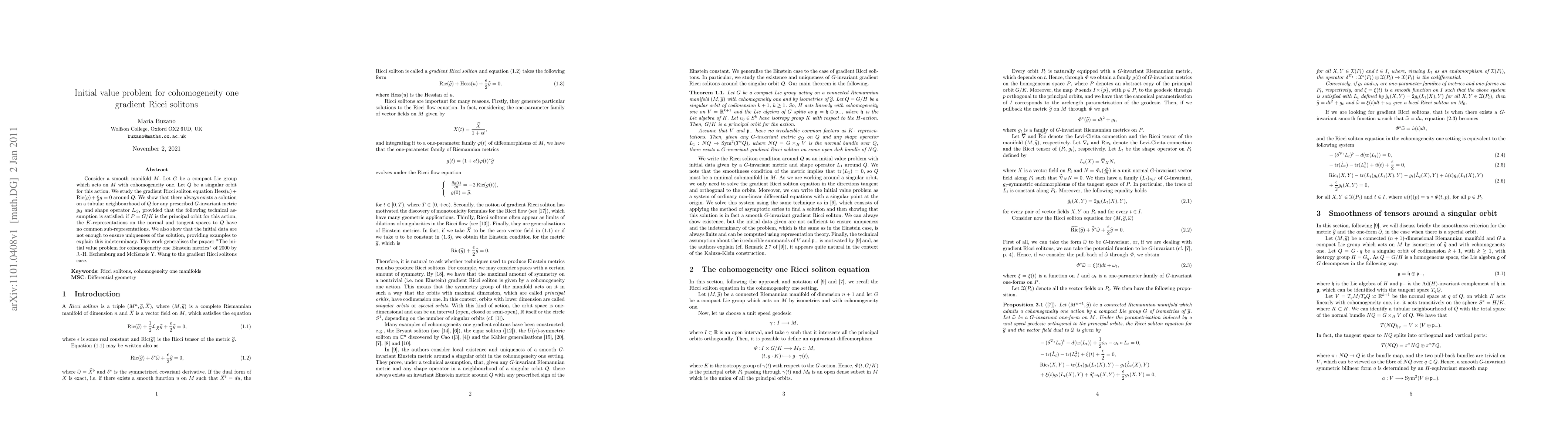 This paper investigates the existence of solutions to the gradient Ricci soliton equation around a singular orbit in a manifold acted upon by a compact Lie group with cohomogeneity one. It proves the existence of solutions under specific technical conditions and demonstrates that initial data alone do not guarantee uniqueness.