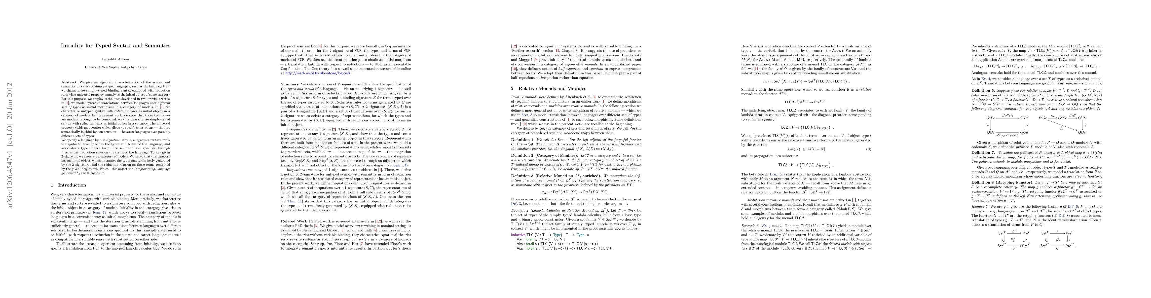This paper characterizes the syntax and semantics of simply-typed languages, such as PCF, using an algebraic approach. It employs techniques from previous works to model translations and reductions, showing that these methods can be combined to define simply-typed syntax as an initial object in a category, providing a universal property for semantically faithful translations between languages with different type sets.