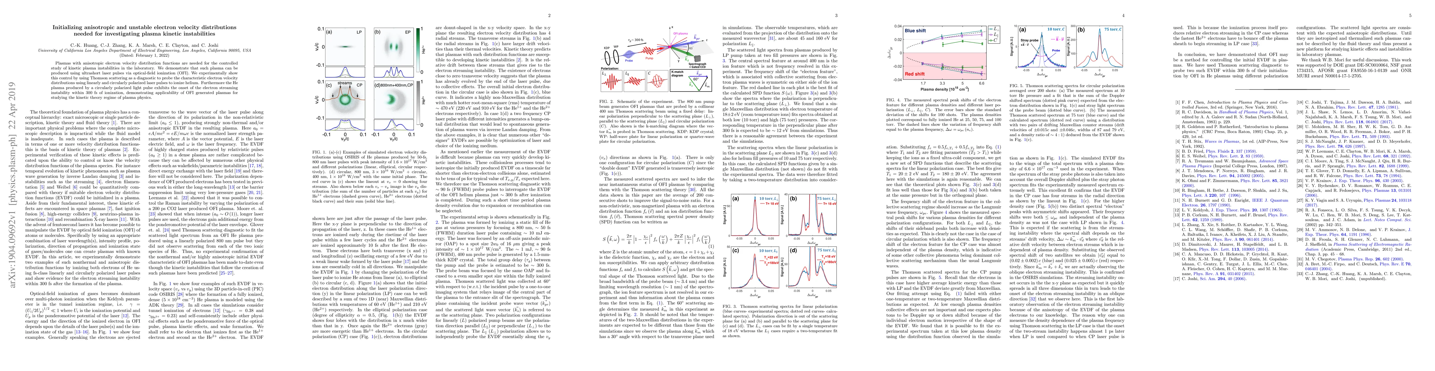 Plasmas with anisotropic electron velocity distribution functions are needed for the controlled study of kinetic plasma instabilities in the laboratory. We demonstrate that such plasma can be produced using ultrashort laser pulses via optical-field ionization (OFI). We experimentally show this control by using Thomson scattering as a diagnostic to probe the characteristic electron velocity distributions using linearly and circularly polarized laser pulses to ionize helium. Furthermore the He plasma produced by a circularly polarized light pulse exhibits the onset of the electron streaming instability within 300 fs of ionization, demonstrating applicability of OFI generated plasmas for studying the kinetic theory regime of plasma physics.