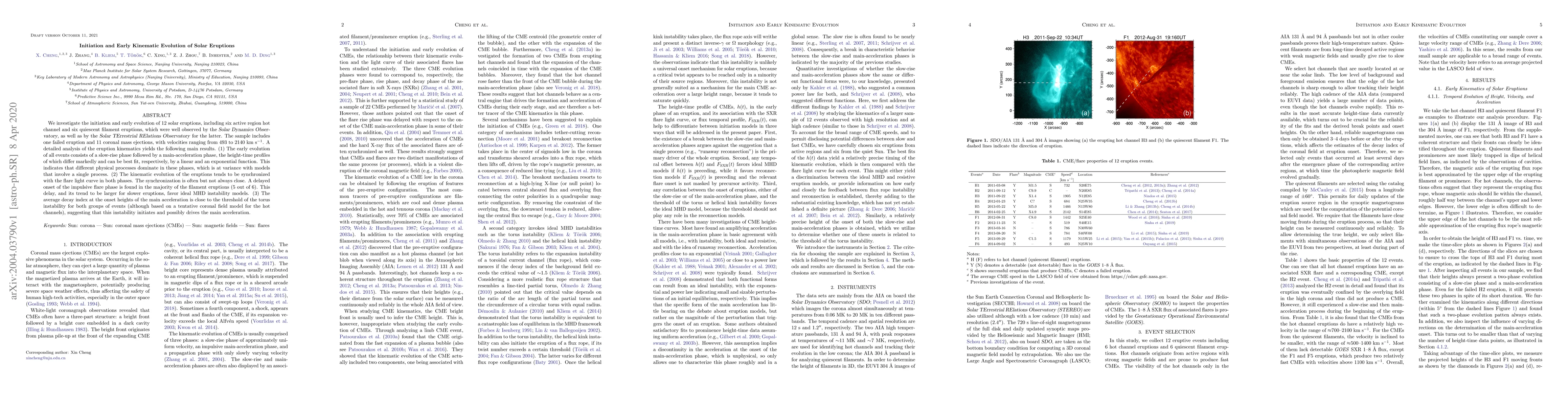 This study analyzes the initiation and early evolution of 12 solar eruptions, revealing a slow-rise followed by a main-acceleration phase, with differing height-time profiles indicating distinct physical processes. The kinematic evolution correlates with flare light curves, with a delayed onset in filament eruptions favoring ideal MHD instability models.