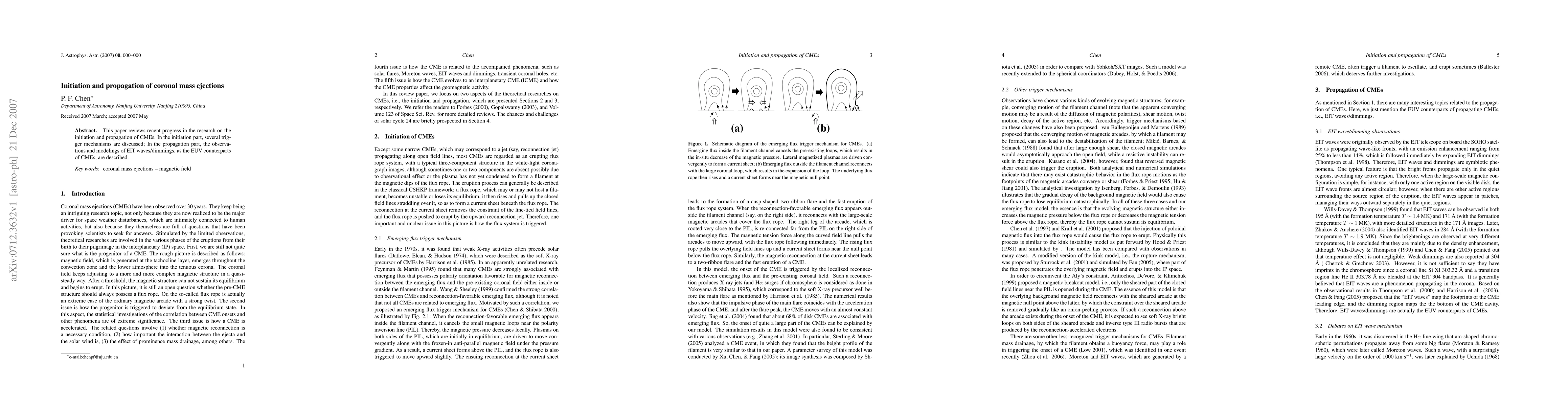 This paper reviews recent research on coronal mass ejections (CMEs), focusing on their initiation and propagation mechanisms, including trigger mechanisms and EUV wave observations.
