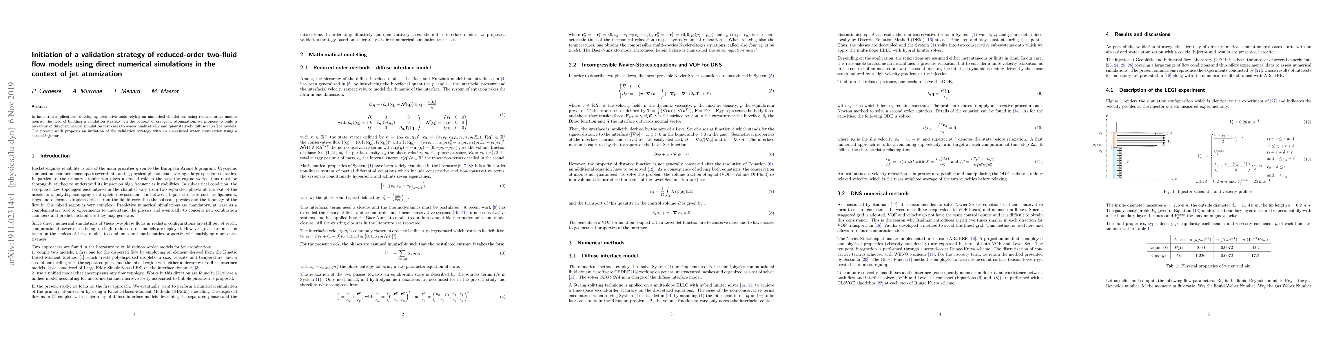 In industrial applications, developing predictive tools relying on numerical simulations using reduced-order models nourish the need of building a validation strategy. In the context of cryogenic atomization, we propose to build a hierarchy of direct numerical simulation test cases to assess qualitatively and quantitatively diffuse interface models. The present work proposes an initiation of the validation strategy with an air-assisted water atomization using a coaxial injector.