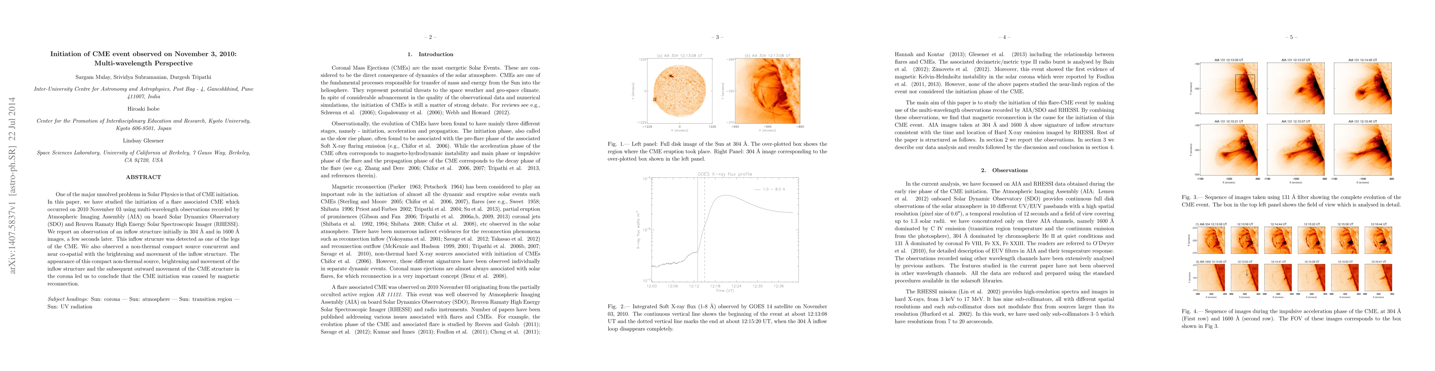This paper investigates the initiation of a CME on November 3, 2010, using multi-wavelength data from SDO/AIA and RHESSI. It identifies an inflow structure preceding the CME, suggesting that magnetic reconnection triggered the event.