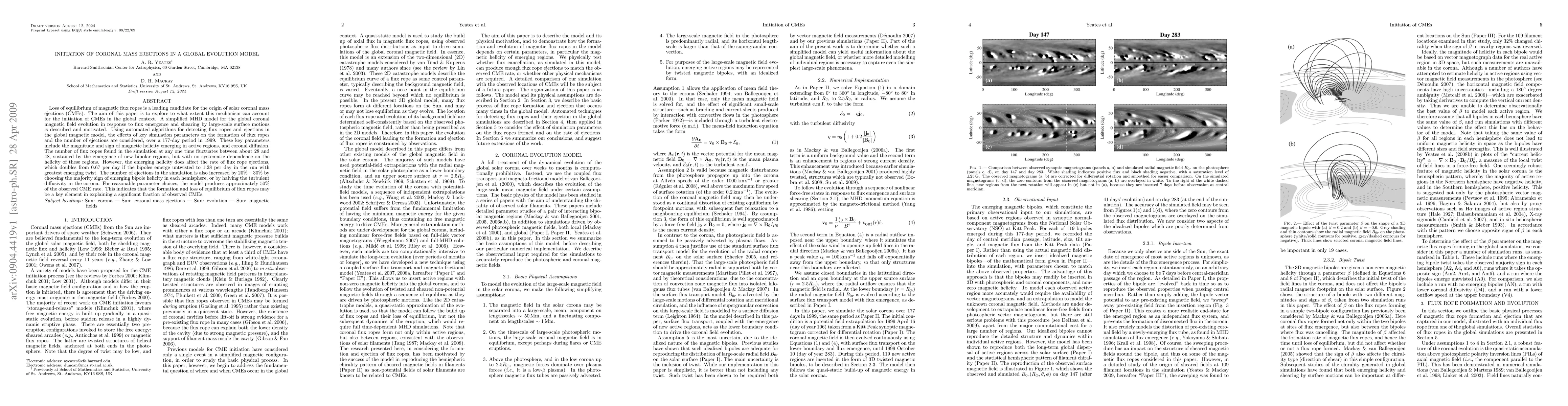 This paper investigates the initiation of coronal mass ejections (CMEs) using a global magnetohydrodynamic (MHD) model, finding that flux rope equilibria loss due to magnetic helicity emergence and shearing can account for a significant fraction of observed CMEs. The model shows that emerging magnetic helicity influences the rate of flux rope ejections, doubling the rate with greater twist, and the overall CME rate can reach approximately 50% of observations.
