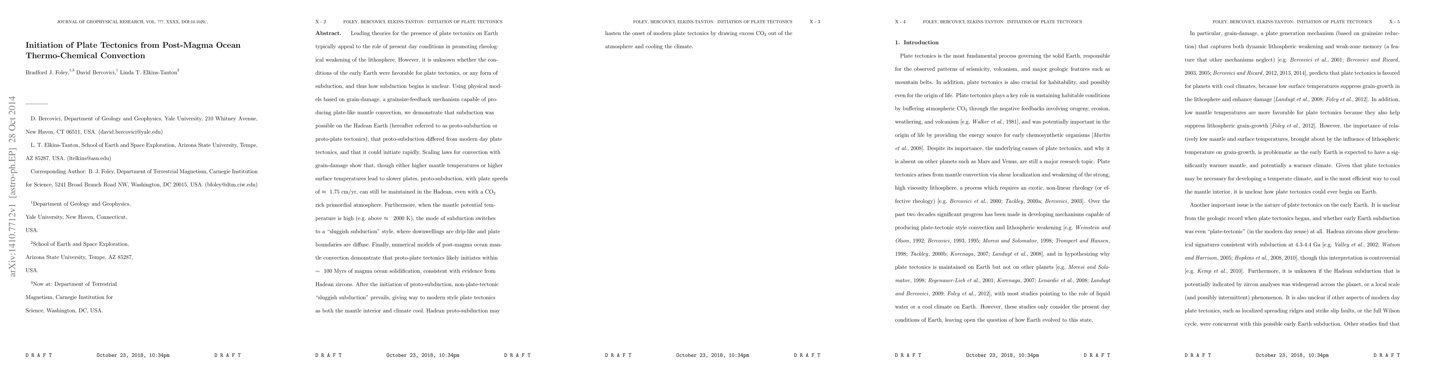 This paper explores the initiation of plate tectonics on early Earth through proto-subduction, demonstrating that it could begin rapidly within 100 million years post-magma ocean solidification. It shows that high mantle temperatures led to a "sluggish subduction" style before transitioning to modern plate tectonics as the Earth cooled.