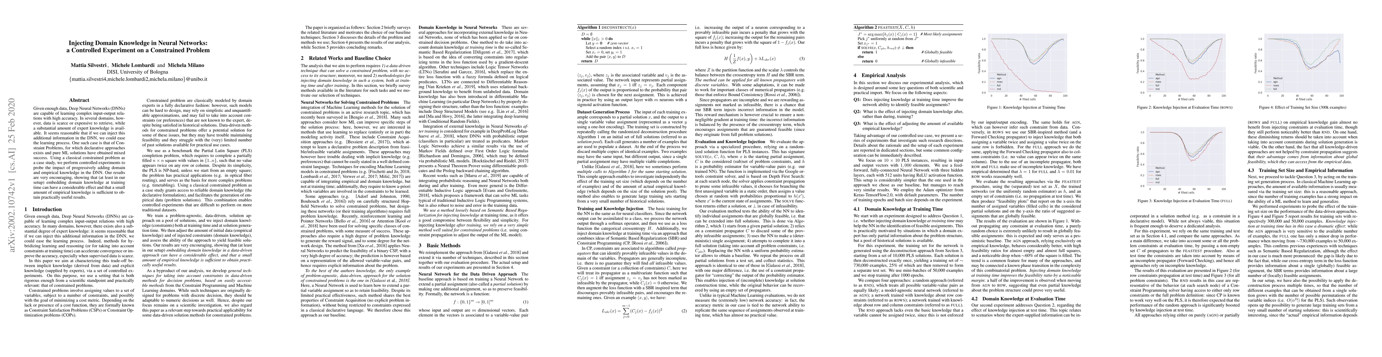 Given enough data, Deep Neural Networks (DNNs) are capable of learning complex input-output relations with high accuracy. In several domains, however, data is scarce or expensive to retrieve, while a substantial amount of expert knowledge is available. It seems reasonable that if we can inject this additional information in the DNN, we could ease the learning process. One such case is that of Constraint Problems, for which declarative approaches exists and pure ML solutions have obtained mixed success. Using a classical constrained problem as a case study, we perform controlled experiments to probe the impact of progressively adding domain and empirical knowledge in the DNN. Our results are very encouraging, showing that (at least in our setup) embedding domain knowledge at training time can have a considerable effect and that a small amount of empirical knowledge is sufficient to obtain practically useful results.