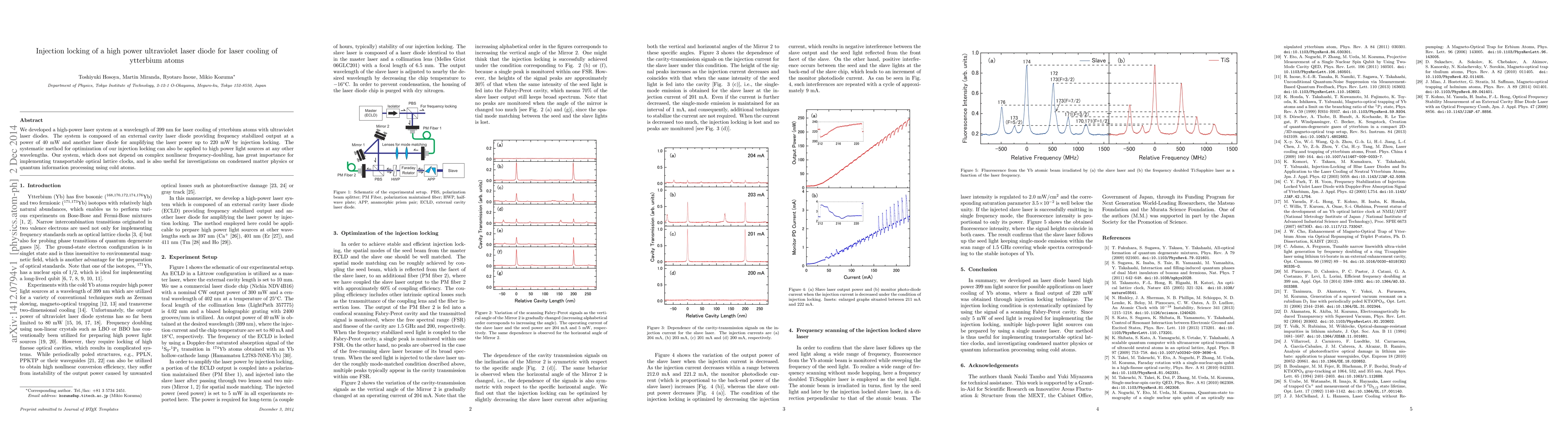 The paper details the development of a high-power ultraviolet laser system at 399 nm for ytterbium atom cooling, using injection locking to amplify output from 40 mW to 220 mW. The method can be applied to other wavelengths, offering a practical approach for transportable optical lattice clocks and cold atom research.