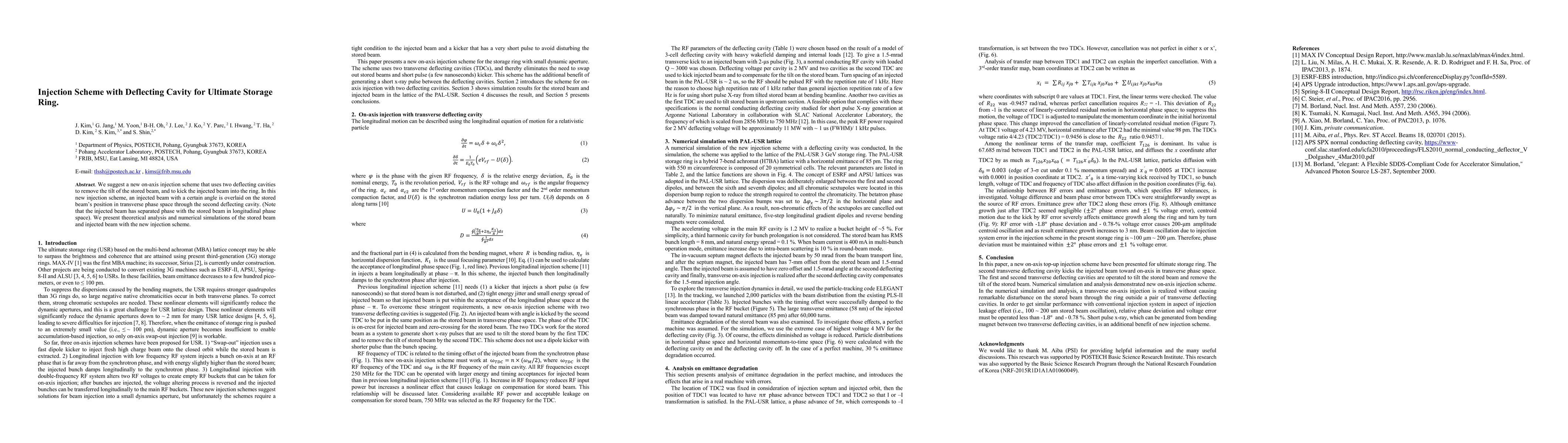 Researchers propose a new injection scheme for particle storage rings that uses deflecting cavities to align and inject beams into the ring.