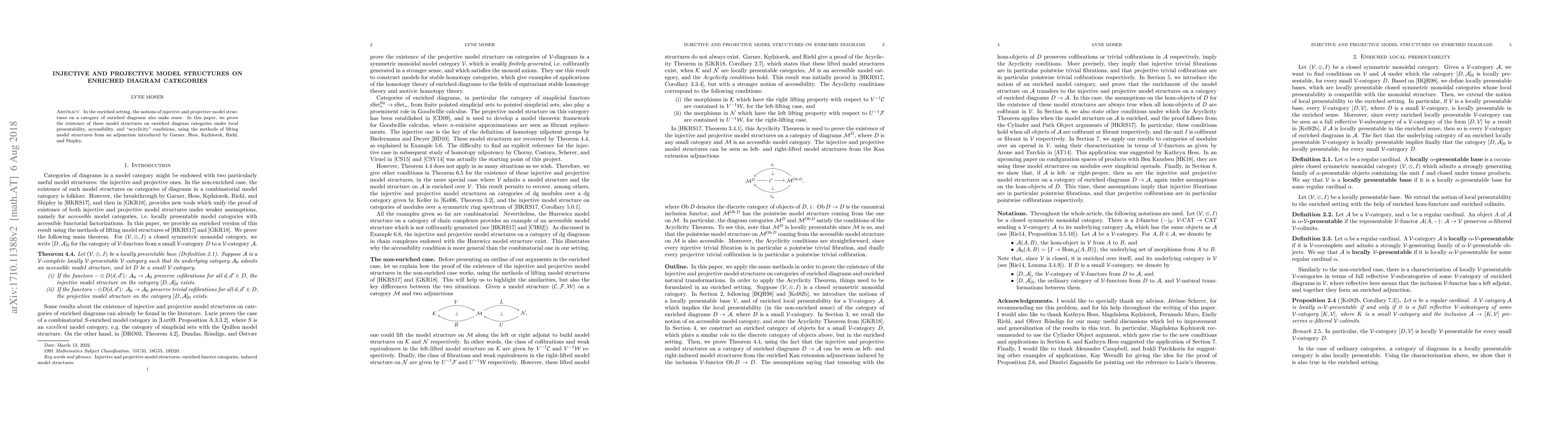 Researchers prove the existence of injective and projective model structures on enriched diagram categories under specific conditions, using an adjunction method. This finding has implications for understanding category theory in enriched settings.
