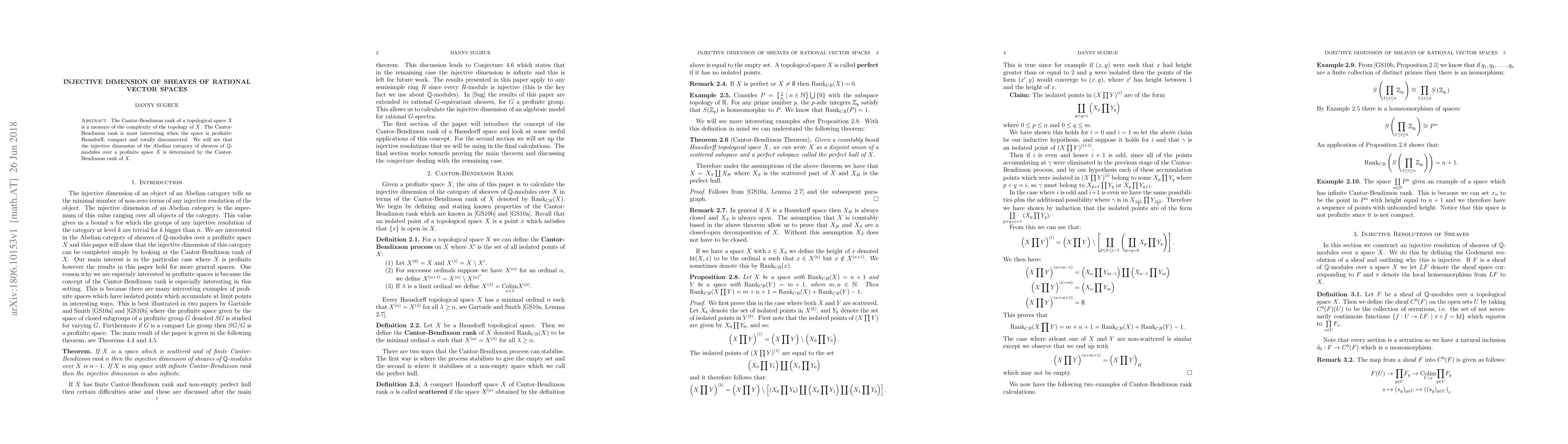 The Cantor-Bendixson rank of a topological space X is a measure of the complexity of the topology of X. The Cantor-Bendixson rank is most interesting when the space is profinite: Hausdorff, compact and totally disconnected. We will see that the injective dimension of the Abelian category of sheaves of rational vector spaces over a profinite space is determined by the Cantor-Bendixson rank of the space.