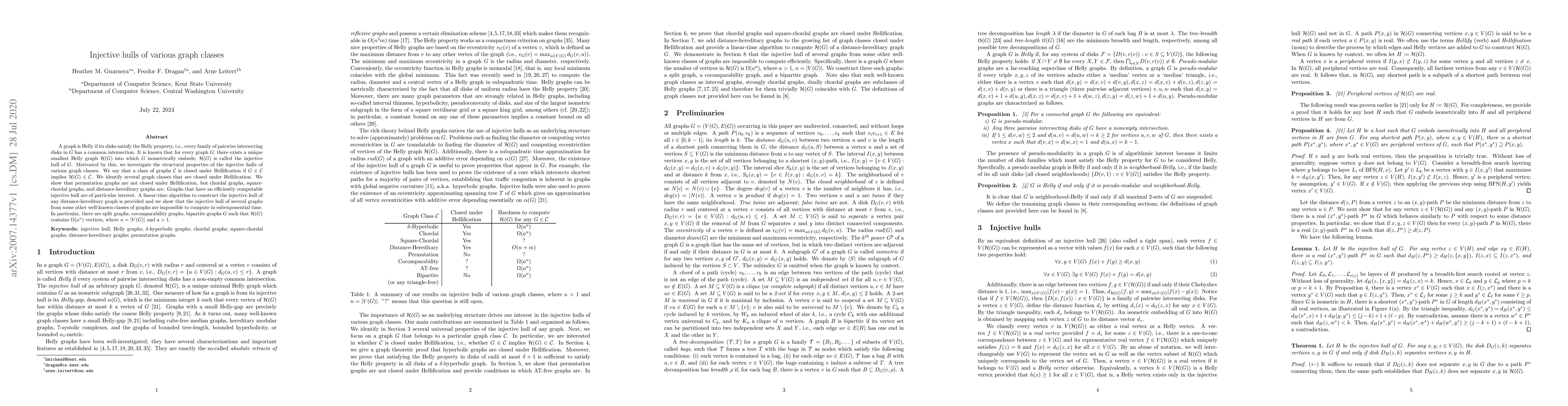 This paper explores the injective hulls of various graph classes, focusing on Helly graphs and their structural properties. It identifies graph classes that remain closed under Hellification, such as chordal, square-chordal, and distance-hereditary graphs, while demonstrating that permutation graphs do not. A linear-time algorithm for constructing the injective hull of distance-hereditary graphs is provided, and it is shown that some other graph classes, like split and bipartite graphs, have injective hulls that cannot be computed in subexponential time.