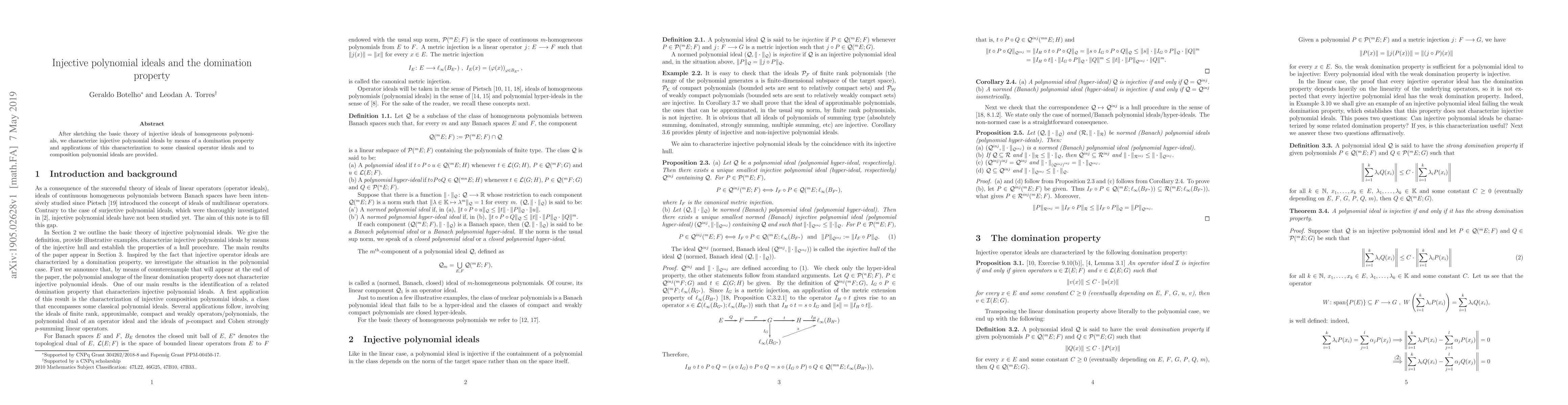 This paper explores injective ideals of homogeneous polynomials, characterizing them through a domination property and applying this characterization to classical operator ideals and composition polynomial ideals. The study provides insights into the structure and properties of these ideals.