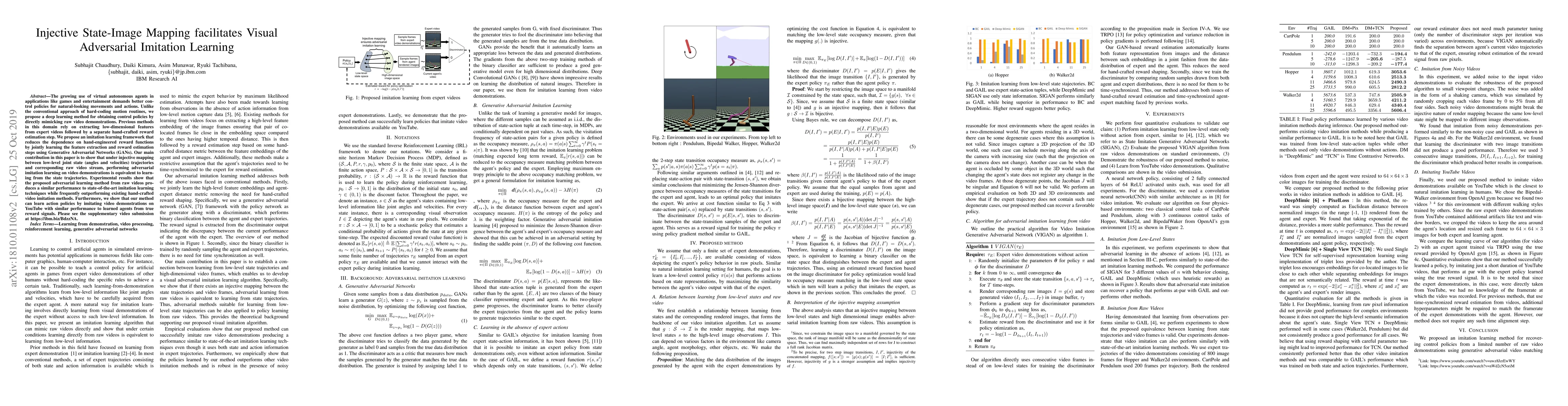 This paper proposes a deep learning method using Generative Adversarial Networks (GANs) to directly learn control policies from raw video demonstrations, eliminating the need for hand-engineered features and reward functions. The method achieves comparable or superior performance to state-of-the-art imitation learning techniques by leveraging injective state-image mappings.