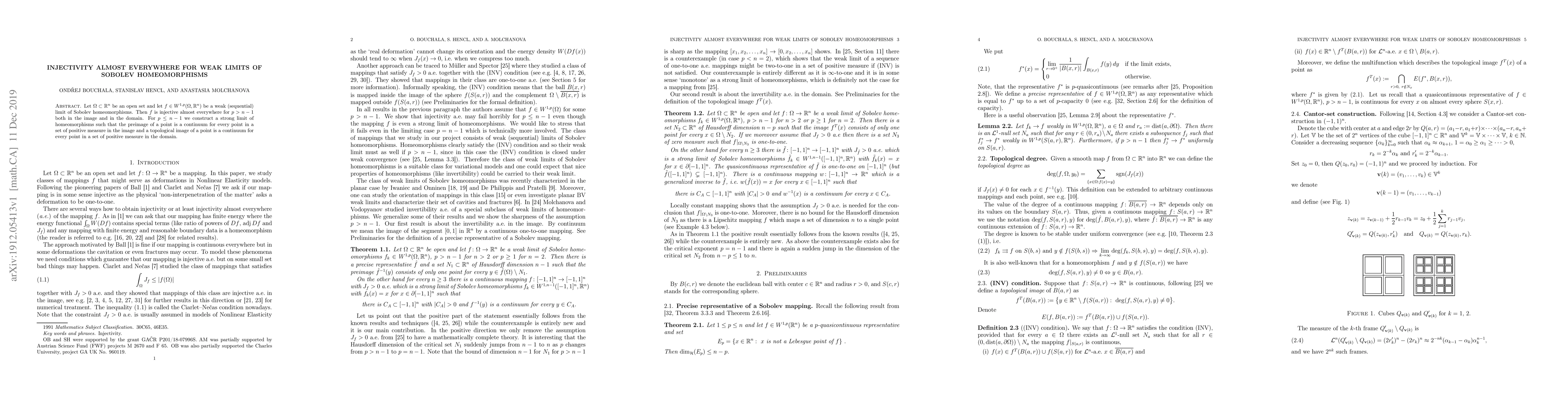 This paper proves that weak limits of Sobolev homeomorphisms are injective almost everywhere when the Sobolev space dimension condition $p > n-1$ is satisfied. For $p \leq n-1$, it constructs examples where strong limits of homeomorphisms exhibit more complex behavior, including continua as preimages and images.