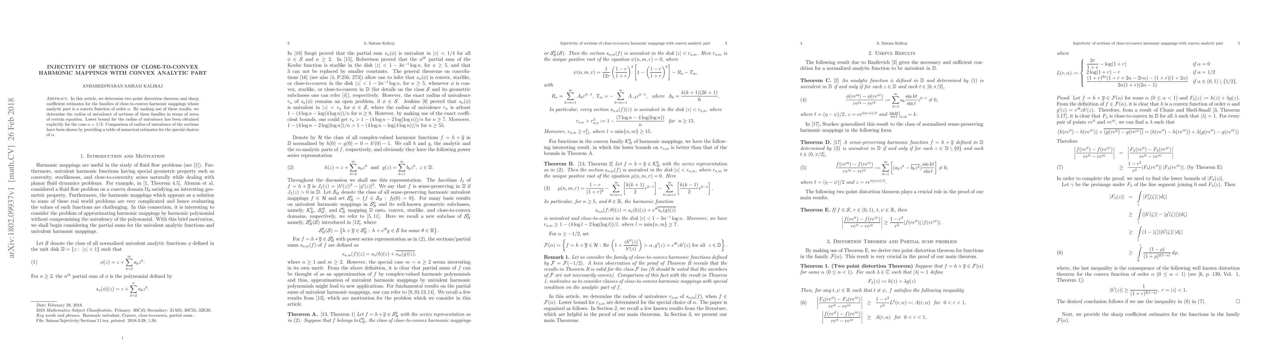 This paper establishes sharp coefficient estimates and a two-point distortion theorem for close-to-convex harmonic mappings with convex analytic parts, determining the radius of univalence of their sections and providing explicit lower bounds for $\alpha = 1/2$. Numerical estimates are also presented for various $\alpha$ values.
