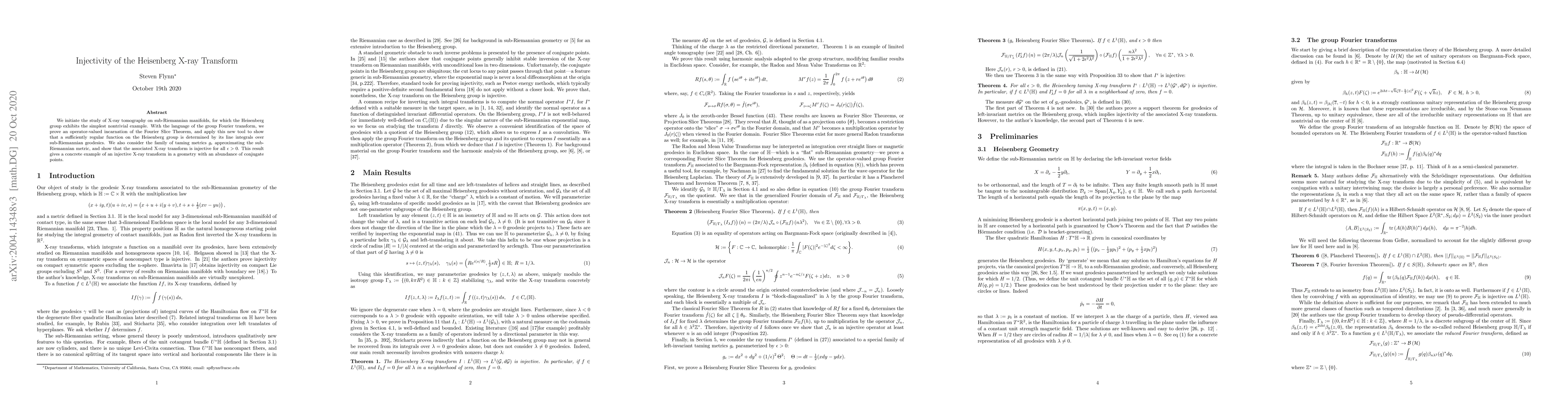 We initiate the study of X-ray tomography on sub-Riemannian manifolds, for which the Heisenberg group exhibits the simplest nontrivial example. With the language of the group Fourier Transform, we prove an operator-valued incarnation of the Fourier Slice Theorem, and apply this new tool to show that a sufficiently regular function on the Heisenberg group is determined by its line integrals over sub-Riemannian geodesics. We also consider the family of taming metrics $g_\epsilon$ approximating the sub-Riemannian metric, and show that the associated X-ray transform is injective for all $\epsilon>0$. This result gives a concrete example of an injective X-ray transform in a geometry with an abundance of conjugate points.