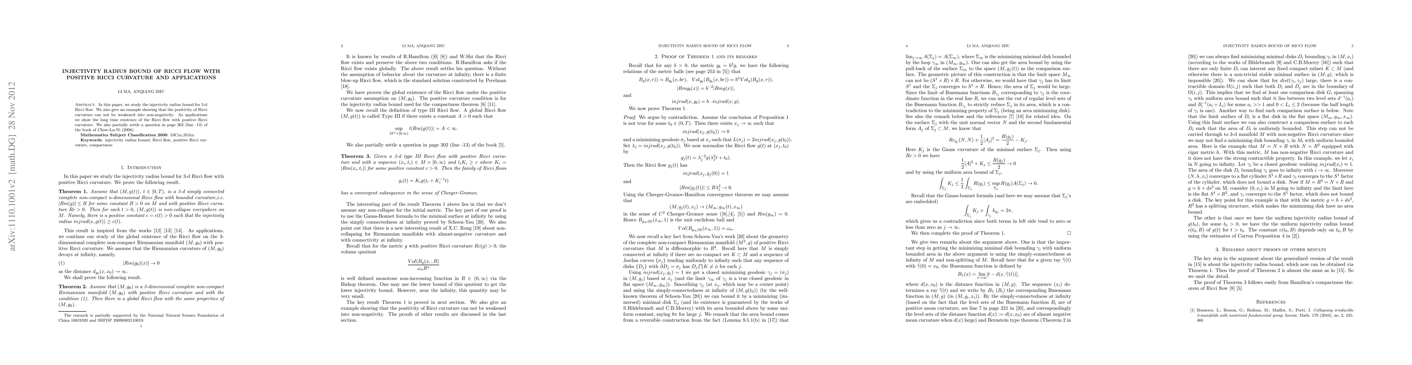This paper investigates the injectivity radius bound in 3-dimensional Ricci flow with positive Ricci curvature, demonstrating the long-term existence of such flows and partially resolving a question from the 2006 Chow-Lu-Ni book.