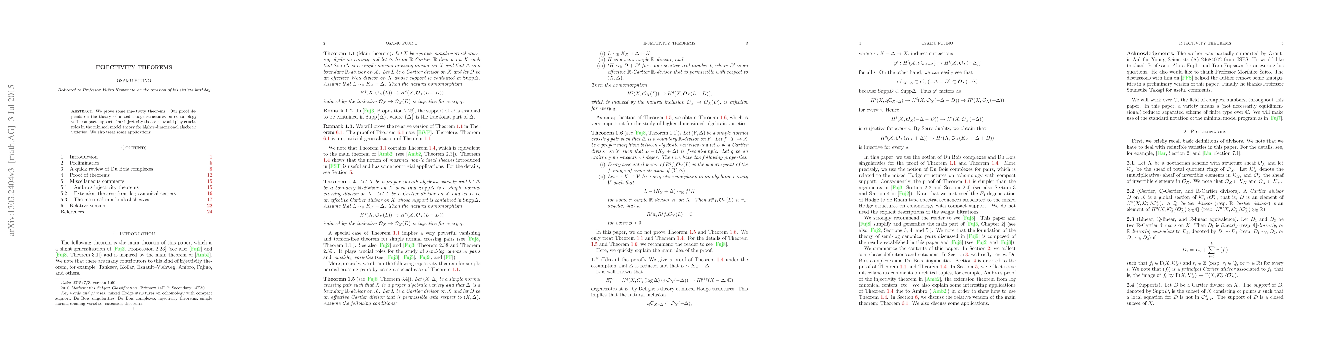 Summary: This paper establishes injectivity theorems using mixed Hodge structures on cohomology groups with compact support, crucial for minimal model theory in higher-dimensional algebraic varieties, and includes relevant applications.
