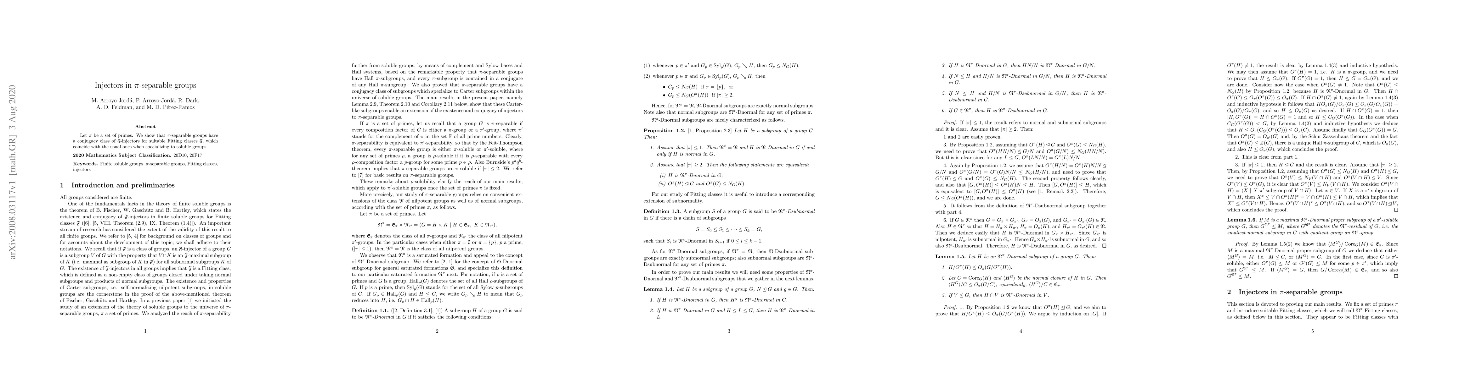 Summary: This paper demonstrates that $\pi$-separable groups possess a conjugacy class of $\mathfrak F$-injectors for appropriate Fitting classes $\mathfrak F$, with these injectors aligning with traditional ones in the context of soluble groups.