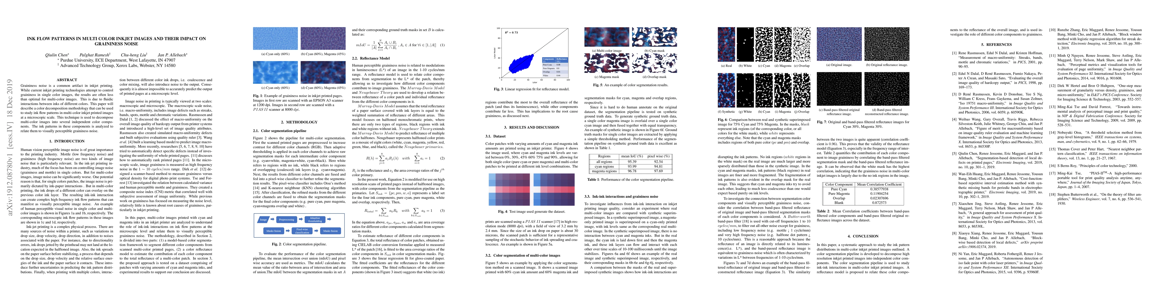 This paper proposes a color decomposition methodology to study ink flow patterns in multi-color inkjet images, aiming to understand and reduce graininess noise caused by fluidic interactions between different inks. The technique decomposes multi-color images into independent color components to analyze ink patterns and their relation to perceptible noise.