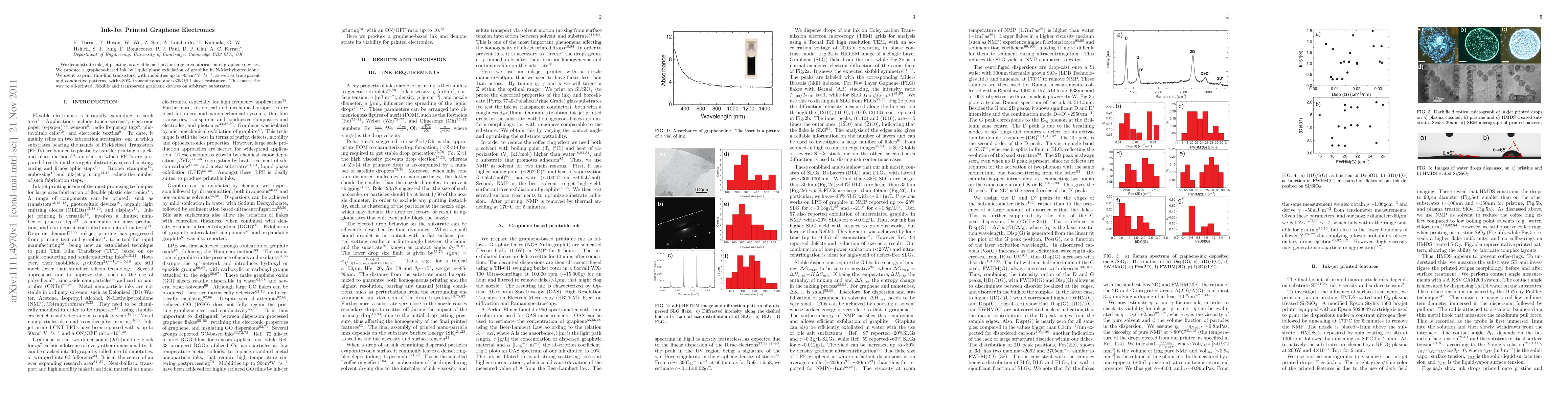 This paper explores the use of ink-jet printing for large-area fabrication of graphene devices, achieving high-performance thin-film transistors and transparent conductive patterns, which opens the door to flexible, all-printed graphene electronics.