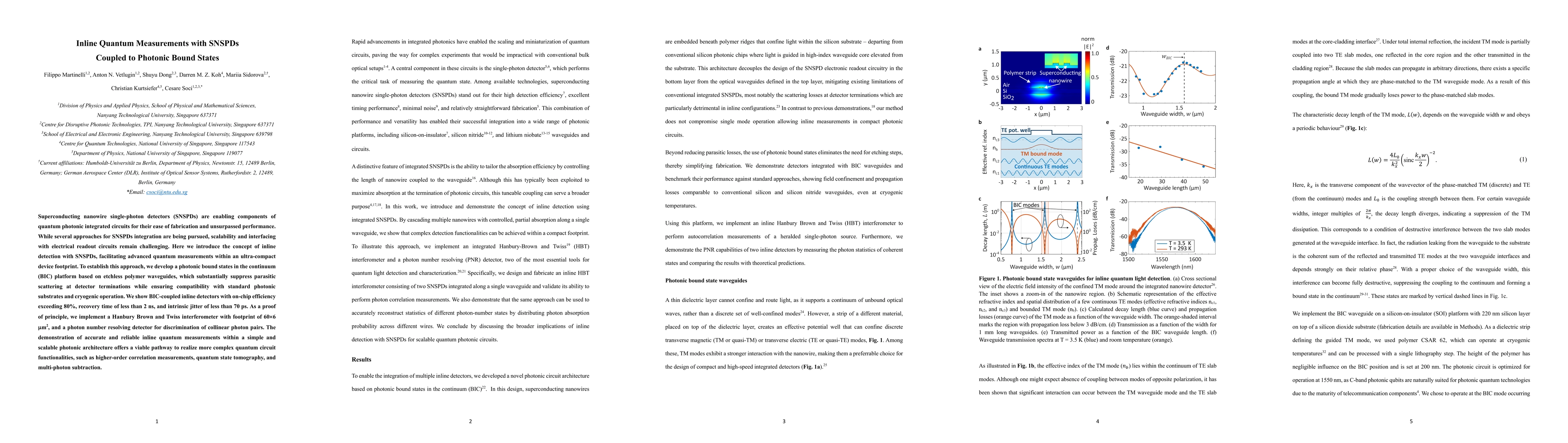 Development of a BIC-based integration platform for SNSPDs, enabling inline detection and high-performance quantum measurements in an ultra-compact footprint.