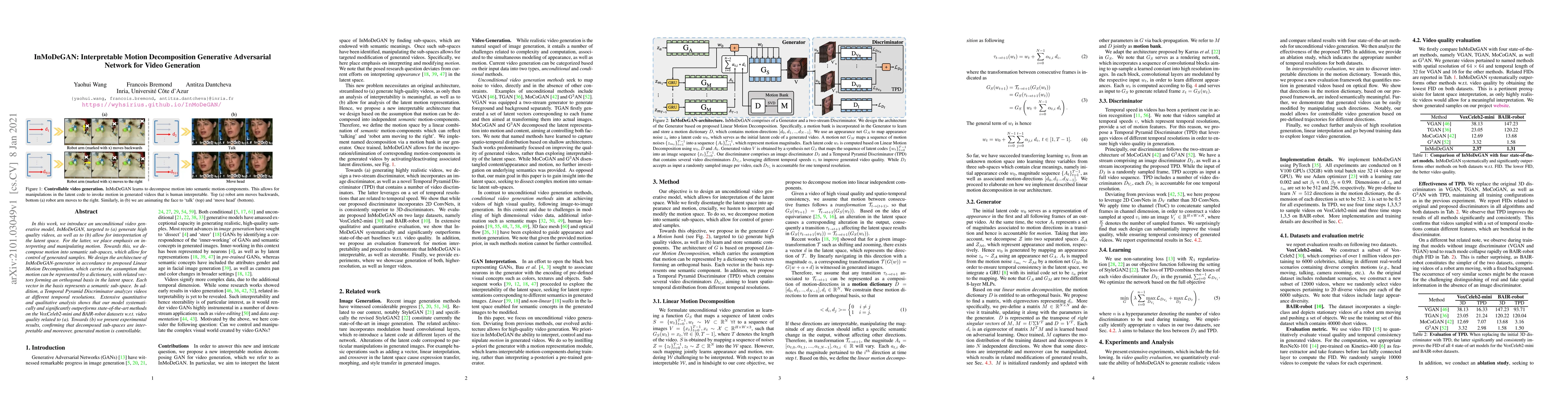 In this work, we introduce an unconditional video generative model, InMoDeGAN, targeted to (a) generate high quality videos, as well as to (b) allow for interpretation of the latent space. For the latter, we place emphasis on interpreting and manipulating motion. Towards this, we decompose motion into semantic sub-spaces, which allow for control of generated samples. We design the architecture of InMoDeGAN-generator in accordance to proposed Linear Motion Decomposition, which carries the assumption that motion can be represented by a dictionary, with related vectors forming an orthogonal basis in the latent space. Each vector in the basis represents a semantic sub-space. In addition, a Temporal Pyramid Discriminator analyzes videos at different temporal resolutions. Extensive quantitative and qualitative analysis shows that our model systematically and significantly outperforms state-of-the-art methods on the VoxCeleb2-mini and BAIR-robot datasets w.r.t. video quality related to (a). Towards (b) we present experimental results, confirming that decomposed sub-spaces are interpretable and moreover, generated motion is controllable.