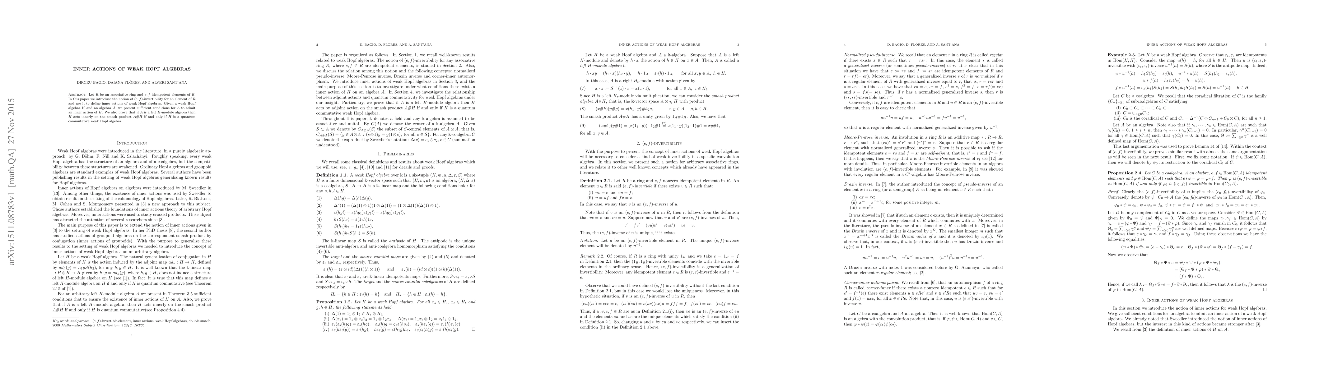This paper introduces the concept of $(e,f)$-invertibility in associative rings and applies it to define inner actions of weak Hopf algebras. It provides conditions for an algebra to admit an inner action from a weak Hopf algebra and proves that a weak Hopf algebra acts innerly on its smash product with an algebra if it is quantum commutative.