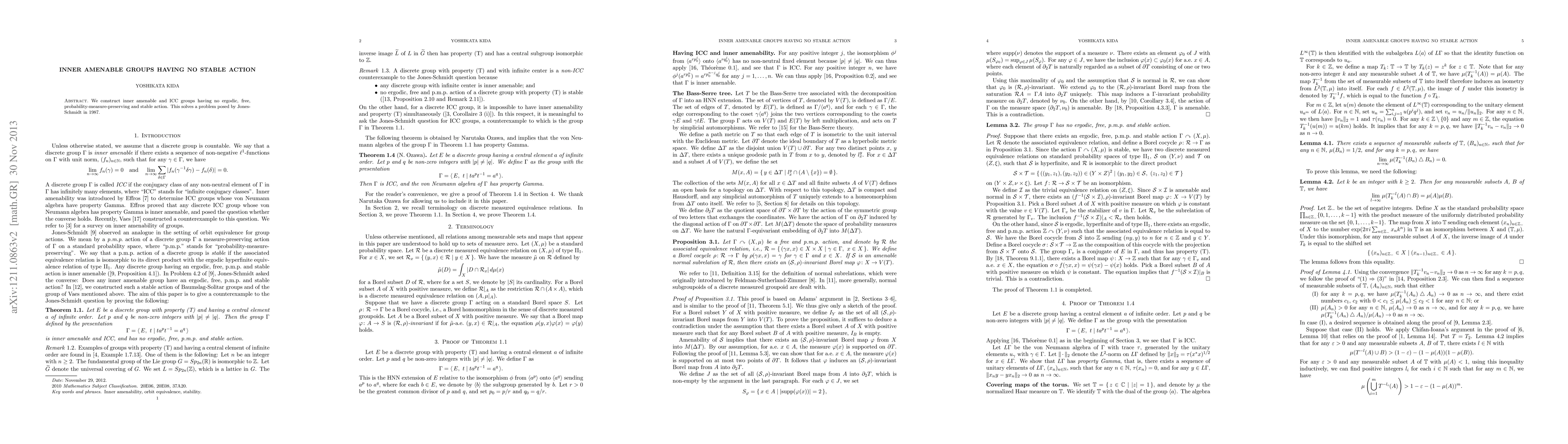 Summary: This paper constructs inner amenable and ICC groups that lack any ergodic, free, probability-measure-preserving, and stable actions, resolving a long-standing problem posed by Jones and Schmidt in 1987.