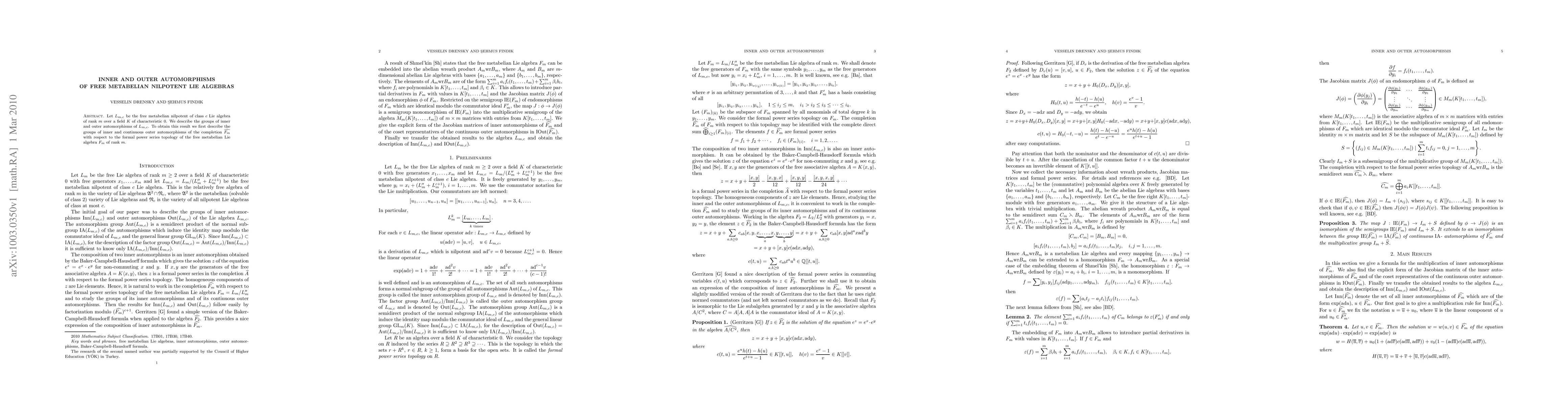 The paper characterizes the inner and outer automorphism groups of free metabelian nilpotent Lie algebras of finite rank over fields of characteristic 0, utilizing the completion of these algebras under the formal power series topology to derive its results.