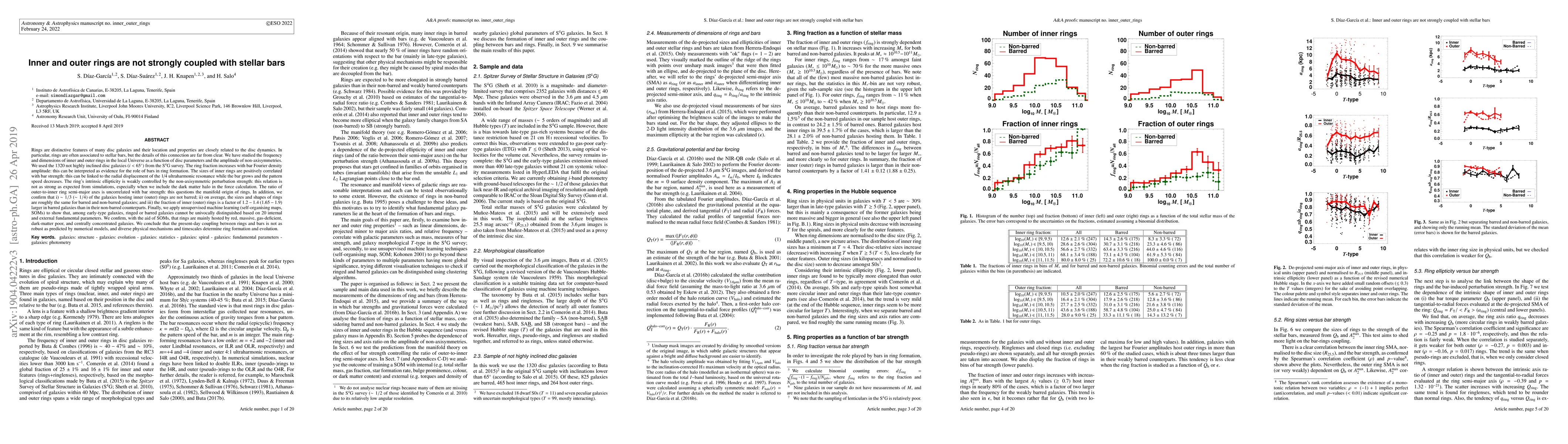 A study of 1320 galaxies found that inner and outer rings are not strongly coupled with stellar bars, contradicting predictions from numerical models.