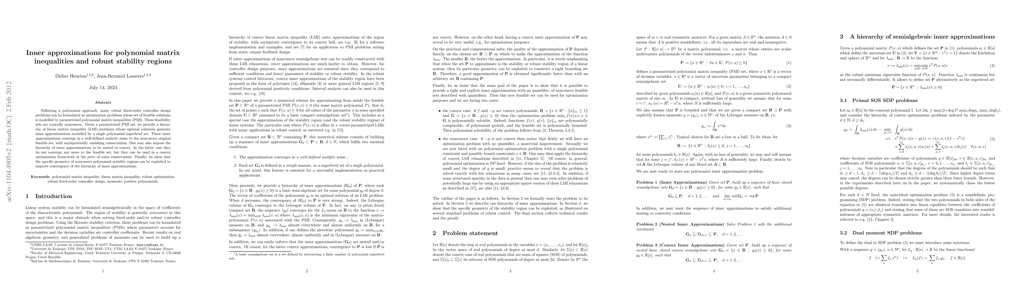 Didier Henrion, Antoine Oustry, Matteo Tacchi