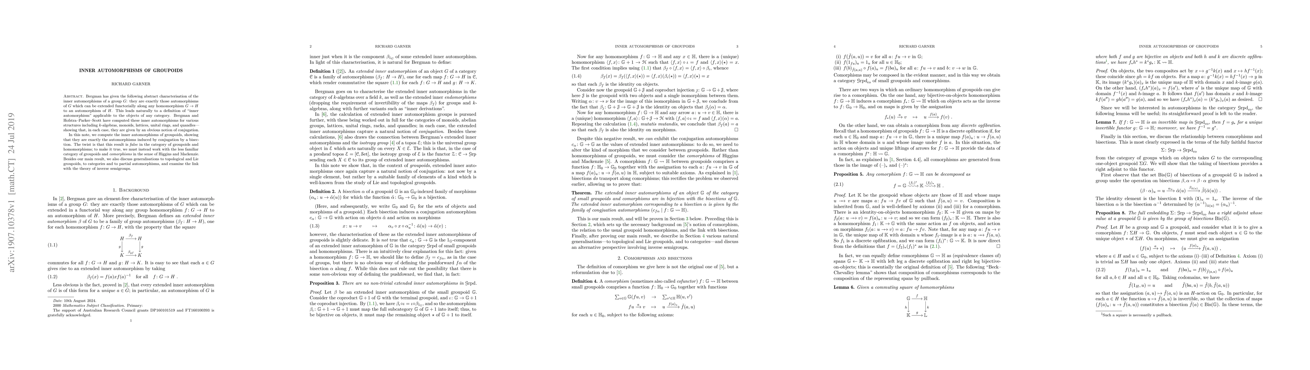 This paper computes the inner automorphisms of groupoids, showing they are induced by conjugation by a bisection, but only in the category of groupoids and comorphisms, not homomorphisms. The authors also discuss generalizations to topological and Lie groupoids, and connections to inverse semigroups.
