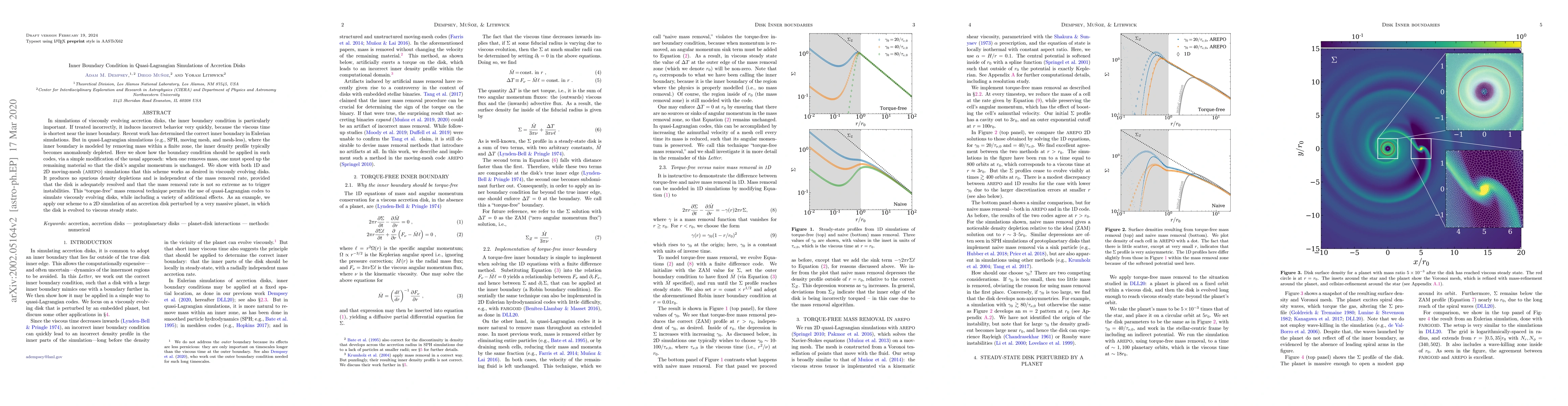 This paper proposes a method to correct the inner boundary condition in quasi-Lagrangian simulations of accretion disks, addressing the issue of anomalous density depletion. The proposed "torque-free" mass removal technique speeds up remaining material to maintain angular momentum, validated through 1D and 2D simulations. This approach allows quasi-Lagrangian codes to accurately simulate viscously evolving disks without spurious density depletions.