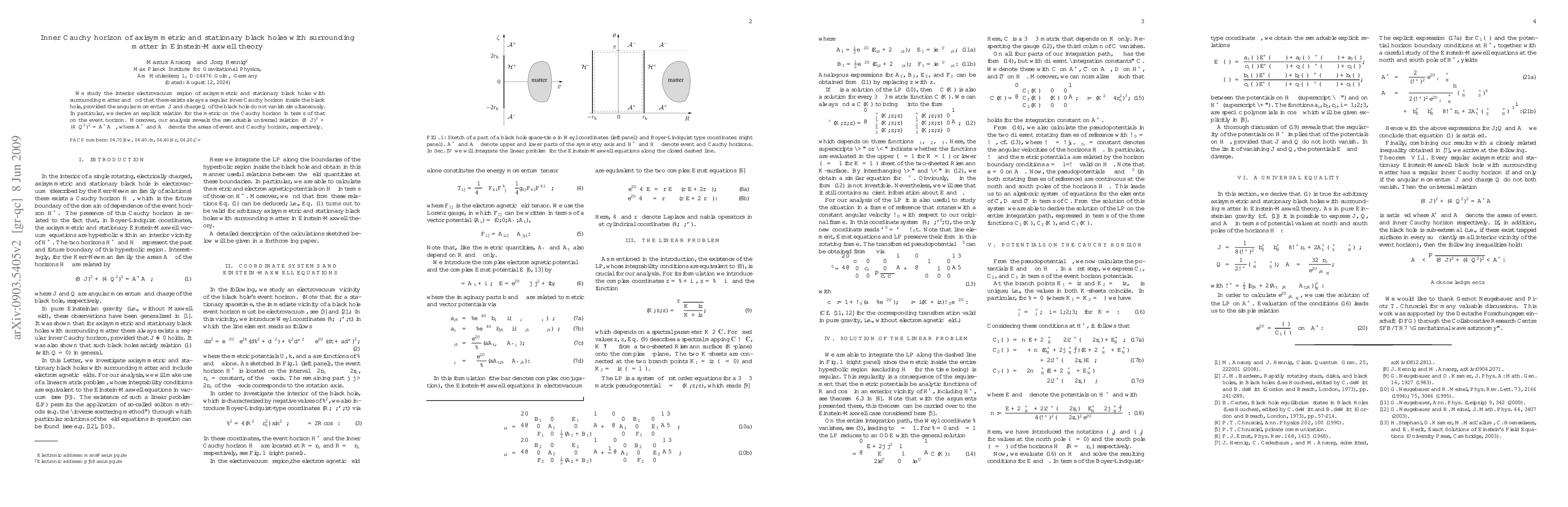 This paper investigates the interior of axisymmetric and stationary black holes with surrounding matter, revealing a regular inner Cauchy horizon when both angular momentum and charge do not simultaneously vanish. It derives a metric relation on the Cauchy horizon and uncovers a universal relation between the areas of the event and Cauchy horizons.