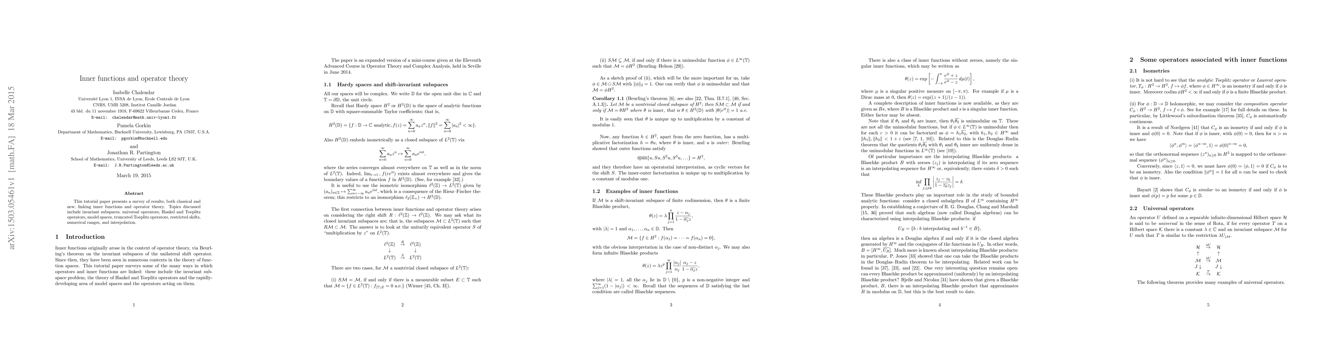 This paper surveys classical and new results connecting inner functions with operator theory, focusing on invariant subspaces, universal operators, and various operator types like Hankel and Toeplitz operators. It also covers model spaces, truncated Toeplitz operators, and numerical ranges.