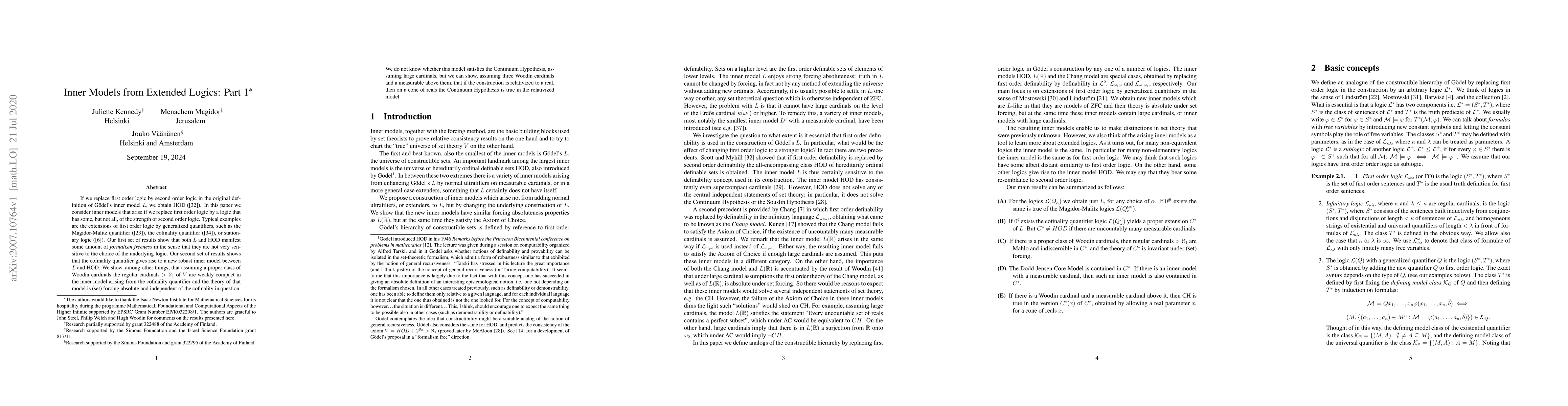 Jouko Väänänen, Juliette Kennedy, Menachem Magidor